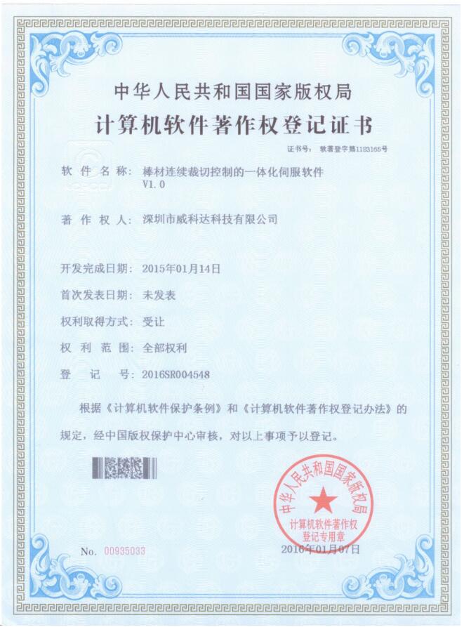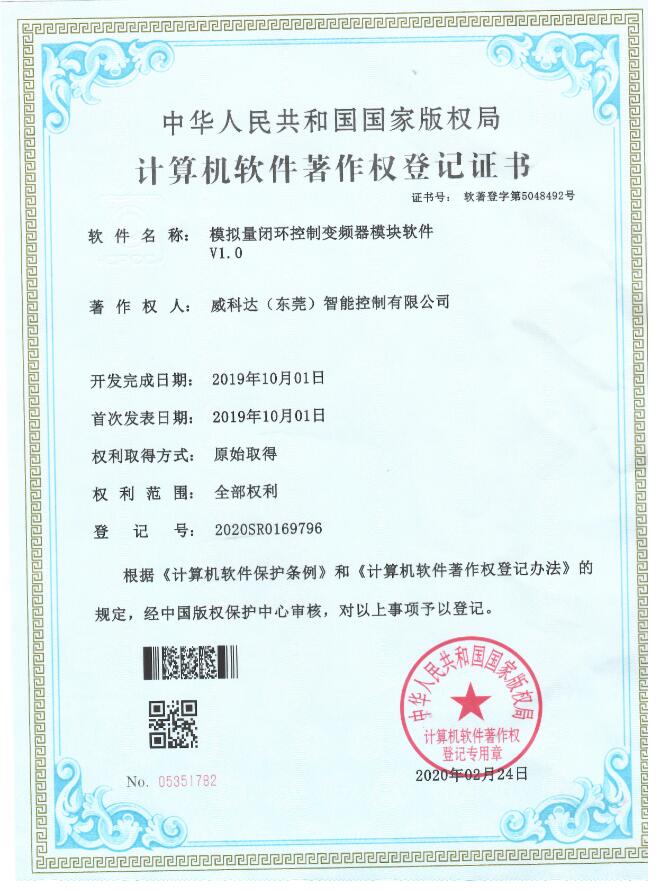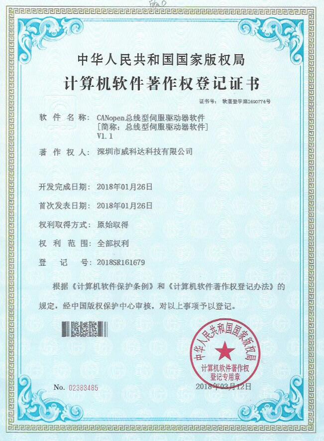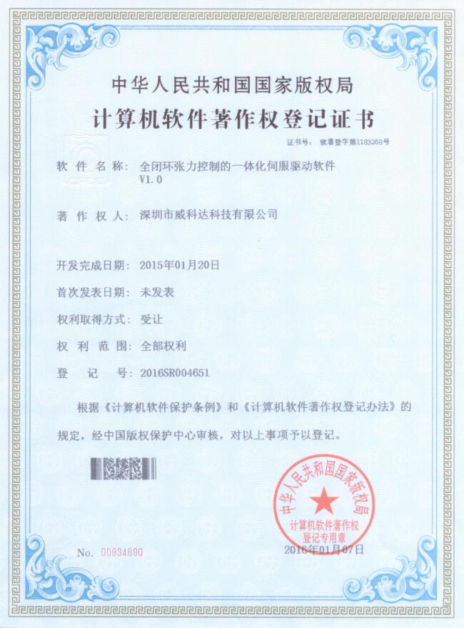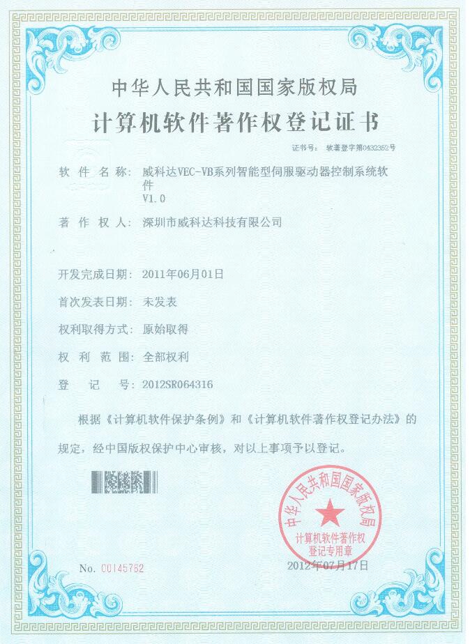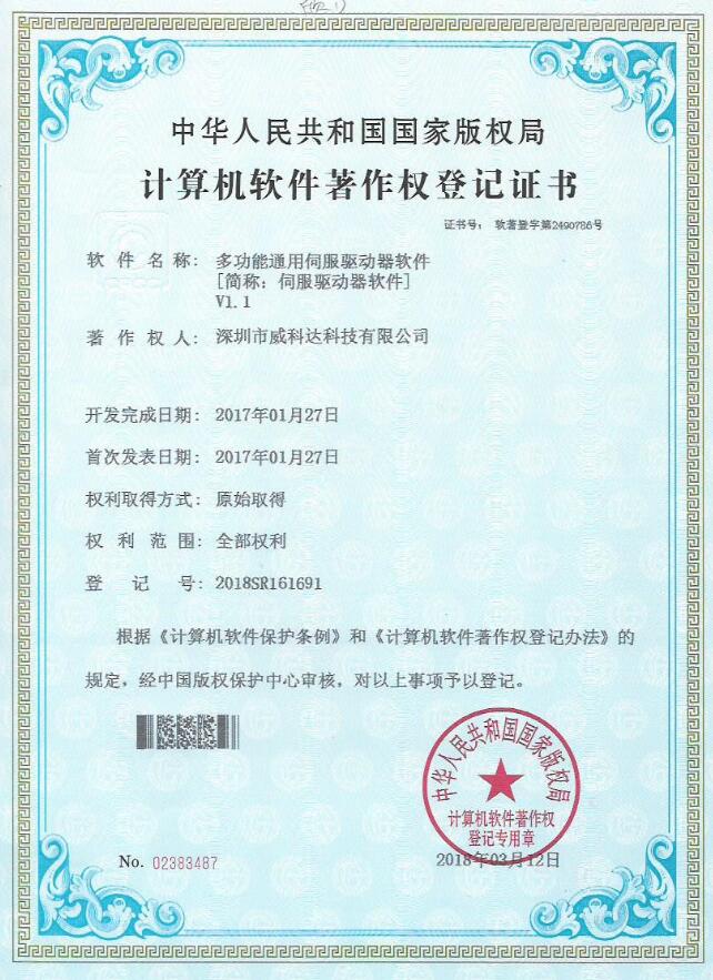 威科達(dá)伺服調(diào)試軟件證書(shū)