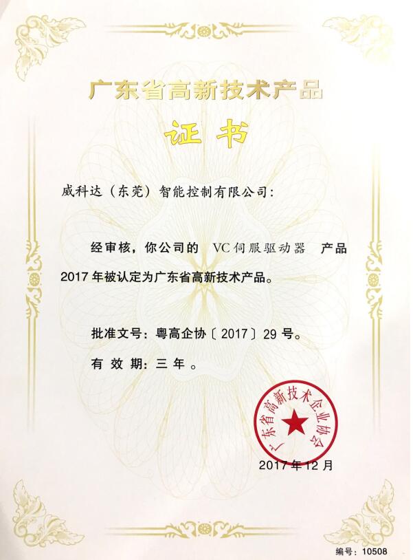 廣東省高新技術(shù)產(chǎn)品證書(shū)